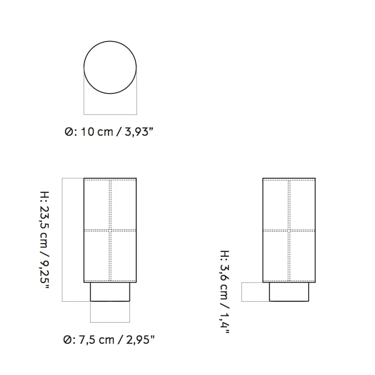 Méret : Átmérő 10cm(3.93") x Magasság 23.5cm(9.25")