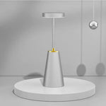 Elegáns és tartós dizájn : Vezeték nélküli LED asztali lámpánk rozsdamentes alumíniumból készült, matt lakkozott felülettel. Elegáns kúp alakú, és nagyon robusztus. Az antislip talpak biztosítják a stabilitást minden felületen, míg az USB töltőport praktikus és modern elemet ad hozzá. Az exkluzív dizájn alkalmas belső és külső használatra, stílusosan és funkcionálisan díszíti terét.