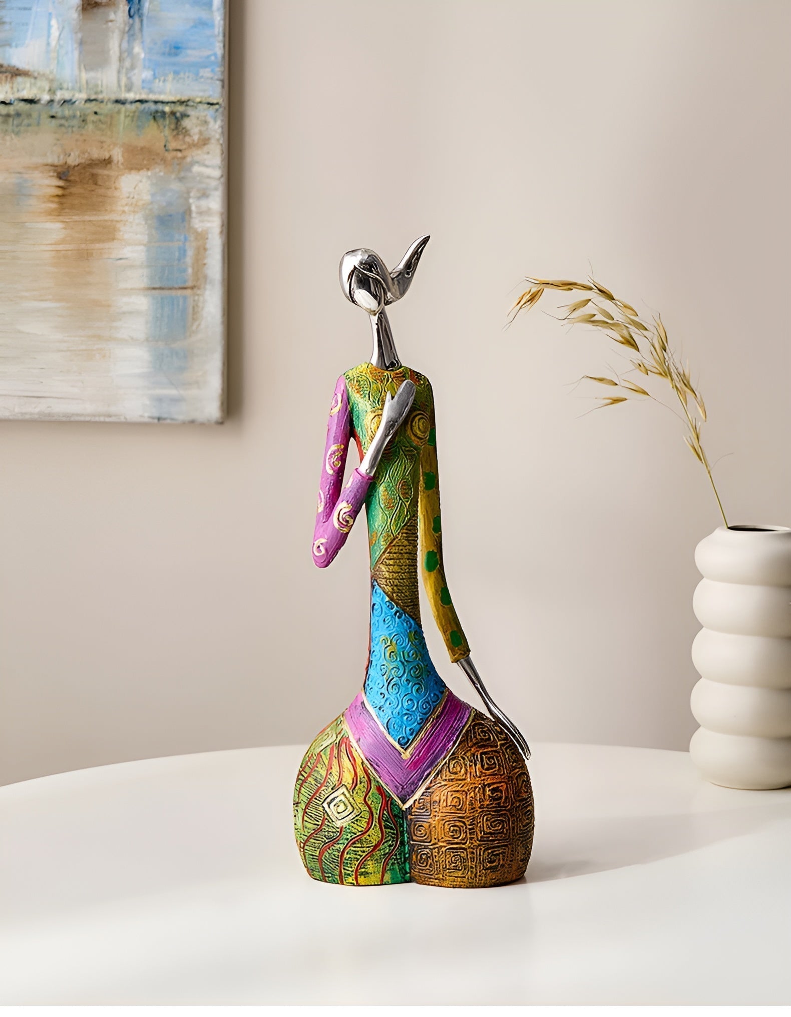 Páratlan kézművesség: Kézzel készült, magas minőségű gyantából, ez a szobor kivételes részletességet és művészi ízlést mutat, amely minden helyiség középpontjába kerül.