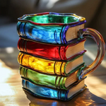 A Fénylő Könyvek Bögre a kreativitást és a történetek iránti szeretetet ünnepli. A könyvek egymásra helyezett formája a tudás és az inspiráció szimbóluma, amely beragyogja a napot.